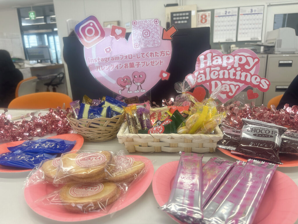 バレンタイン当日2月14日(土)まで、事務所前にてお菓子を配っています🍬