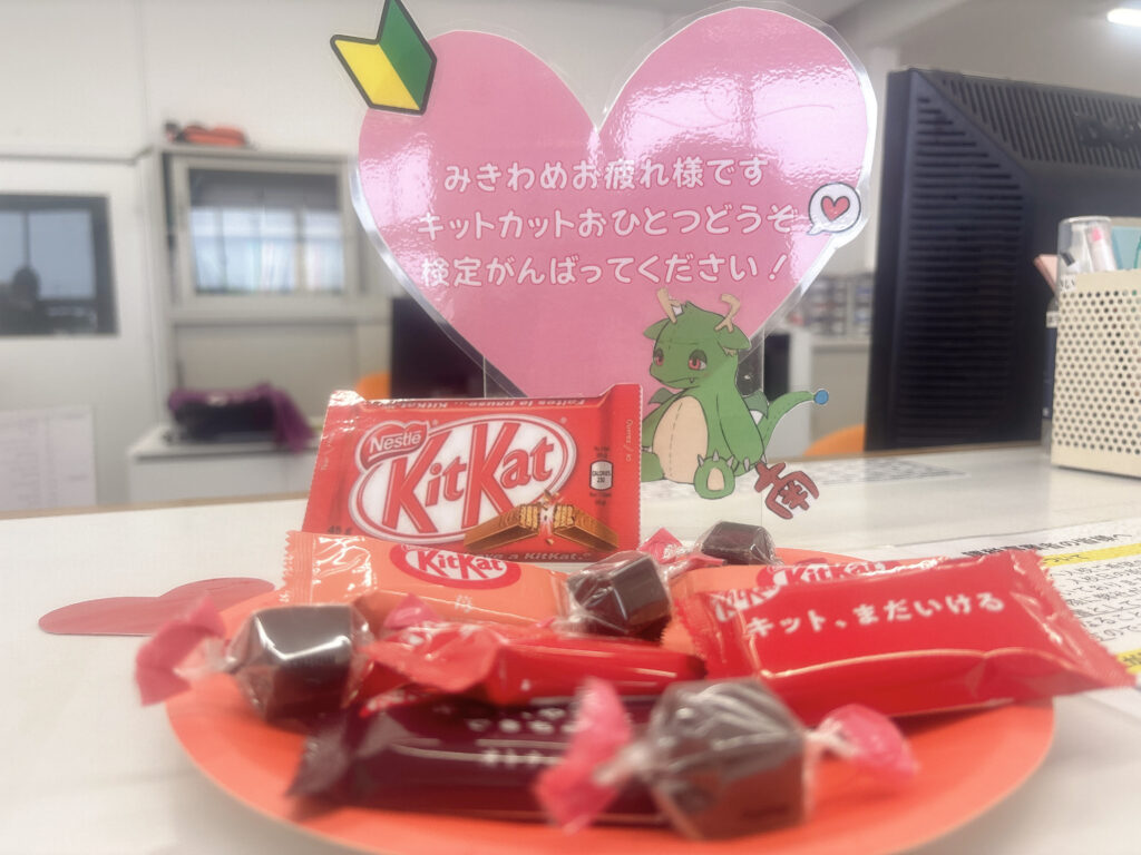 検定受付前にキットカットもお渡ししています。
