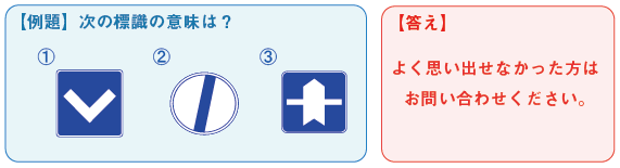 | 法規等の確認 | 忘れてしまいがちな標示・標識・違反・反則金についてお話しいたします![]() | 知識の再確認を行うことで、交通違反の減少につながります |